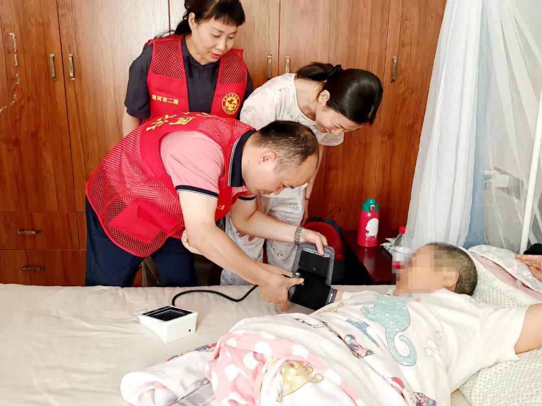 許阿姨患有心臟病、高血壓及腰椎疾病多年,天氣炎熱她的血壓一直不穩(wěn)定,家屬通過微信群向科室副主任楊光咨詢。7月16日,楊光在了解此情況后,與李慧新主任商量,決定帶醫(yī)療團隊一起前往許阿姨家中,為她進行血壓測量、心臟聽診等檢查,對其日常生活中的注意事項進行了詳細的指導。同時,還對許阿姨的用藥方案和康復計劃進行了相應的調整。