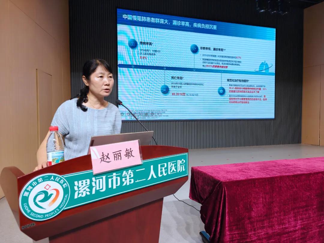 本次培訓特邀中華醫(yī)學會呼吸病學專家,河南省人民醫(yī)院趙麗敏教授進行授課。趙麗敏教授以“雙支擴劑在慢性阻塞性肺疾?。–OPD)中的規(guī)范化診療”為題,結(jié)合河南省慢阻肺流行病學調(diào)查中的大數(shù)據(jù),系統(tǒng)闡述了慢阻肺的早期篩查、階梯化治療和長期管理策略,她著重指出:“基層醫(yī)療機構(gòu)是慢阻肺防控的第一道防線,推行肺功能檢查普及、建立患者分級隨訪體系是改善預(yù)后的關(guān)鍵。”并強調(diào)了“像測血壓一樣測肺功能”的早篩意識,真正實現(xiàn)“防重于治”的目標。