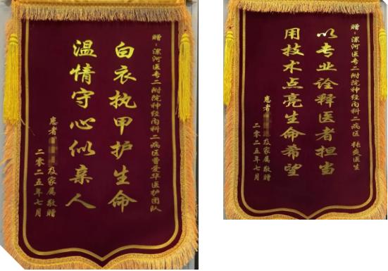 “你們不僅關(guān)注我的病情變化,更用溫暖的笑容和貼心的言語緩解了我的焦慮,讓我感受到醫(yī)者仁心的力量。”康復(fù)出院后,患者及家屬攜錦旗與感謝信再次來到醫(yī)院,他們把“以專業(yè)詮釋醫(yī)者擔(dān)當(dāng) 用技術(shù)點(diǎn)亮生命希望”、“白衣執(zhí)甲護(hù)生命 溫情守心似親人”這樣的贊譽(yù)送給醫(yī)護(hù)人員,表達(dá)著對(duì)醫(yī)護(hù)團(tuán)隊(duì)的認(rèn)可,也彰顯了醫(yī)院多學(xué)科聯(lián)合會(huì)診機(jī)制,院前急救、院內(nèi)急診、院內(nèi)救治全流程閉環(huán)管理的顯著優(yōu)勢。