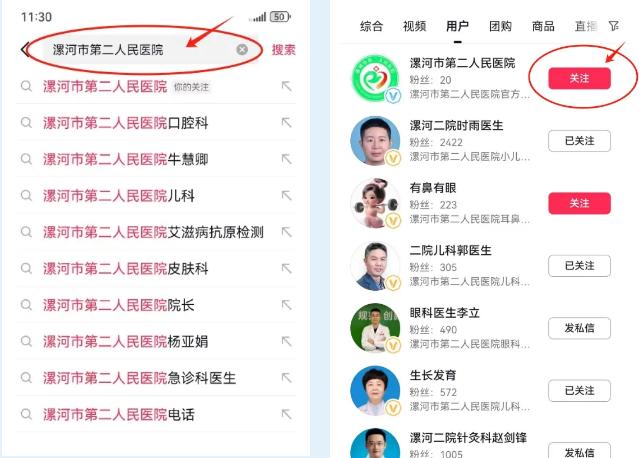 用戶(hù)名“漯河市第二人民醫(yī)院”或者抖音賬號(hào)71780395553