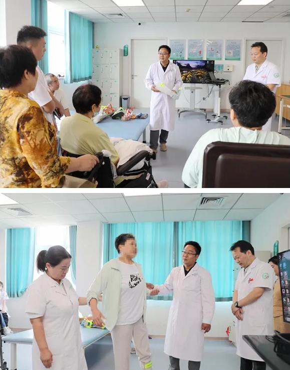 在11樓康復(fù)病區(qū),安恒遠(yuǎn)教授深入病房,對(duì)科室重點(diǎn)、疑難康復(fù)患者進(jìn)行了細(xì)致的床邊查房和評(píng)估,并結(jié)合患者的具體病情、影像資料及當(dāng)前康復(fù)方案,與康復(fù)科醫(yī)護(hù)人員進(jìn)行了深入交流和討論,提出了個(gè)體化診療建議和康復(fù)方案優(yōu)化意見。