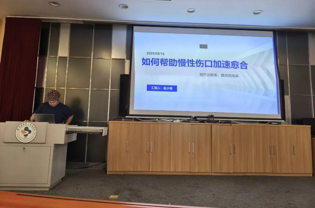 隨后,壓力性損傷/傷口護(hù)理學(xué)組學(xué)術(shù)調(diào)研組長趙小艷老師圍繞《如何幫助慢性傷口加速愈合》展開授課。她深入探討慢性傷口愈合延遲的常見誘因,如局部血運(yùn)、感染、營養(yǎng)不良等,進(jìn)而系統(tǒng)闡述了個性化護(hù)理方案制定、傷口清創(chuàng)技巧、感染防控要點(diǎn),以及通過優(yōu)化局部環(huán)境、結(jié)合物理治療等促進(jìn)愈合的實(shí)用手段。豐富的內(nèi)容和實(shí)用的方法,為護(hù)理人員應(yīng)對慢性傷口難題提供了清晰思路與有效策略。