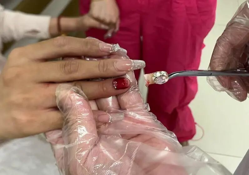 據(jù)了解,小文因不慎摔倒,右手著地時導(dǎo)致新做的美甲被連根掀起,伴隨劇烈疼痛,她隨即趕往醫(yī)院求助。醫(yī)生在清潔傷指后發(fā)現(xiàn),其指甲大部分已從甲床剝離。經(jīng)與患者溝通,醫(yī)護人員在無菌操作下為小文實施了拔甲術(shù),并叮囑其注意保護創(chuàng)口、避免感染,保持局部干燥,必要時可服用止痛藥緩解疼痛。如出現(xiàn)紅腫、滲液或發(fā)熱等感染跡象,須及時復(fù)診。