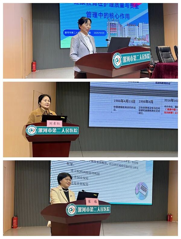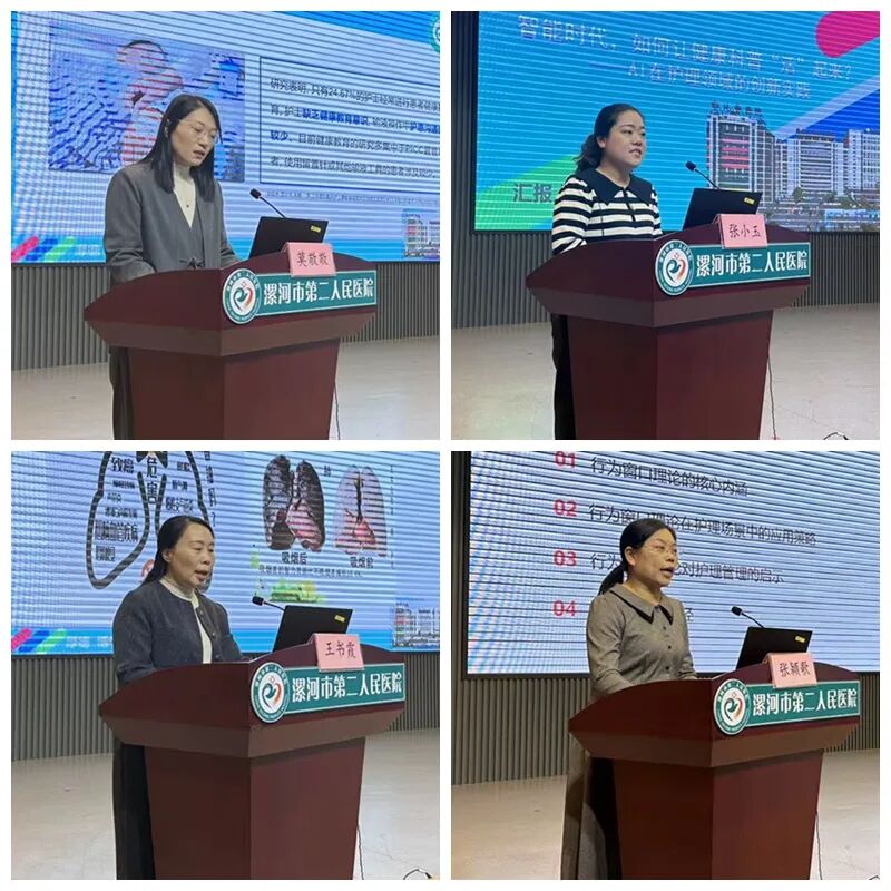在學(xué)術(shù)交流環(huán)節(jié),多位護(hù)理專家圍繞健康教育的新理念、新方法與新技術(shù)展開深入探討。市二院護(hù)理部主任高凱霞分享了《健康教育在護(hù)理質(zhì)量與安全管理中的核心作用》;市中心醫(yī)院護(hù)理部副主任劉素紅講解了《基于賦能理論構(gòu)建三級(jí)醫(yī)院健康教育護(hù)士健康素養(yǎng)提升路徑》;市六院護(hù)理部副主任崔臻以《賦能·融合——構(gòu)建新時(shí)代醫(yī)院護(hù)理健康教育體系的實(shí)踐與思考》為題進(jìn)行交流;臨潁縣人民醫(yī)院護(hù)理部副主任張潁歌介紹了《基于行為窗口理論的護(hù)士高效能溝通技巧》;市二院普外科護(hù)士長(zhǎng)王書霞圍繞《腫瘤患者營(yíng)養(yǎng)與身心健康:吃出健康,動(dòng)出活力》展開講解;麻醉手術(shù)部副護(hù)士長(zhǎng)莫敬敬探討了《基于指南的靜脈治療健康教育及溝通模式》;小兒外科骨干護(hù)士張小玉則就《智能時(shí)代,如何讓健康科普“活”起來?——AI在護(hù)理領(lǐng)域的創(chuàng)新實(shí)踐》進(jìn)行分享。專家們結(jié)合臨床實(shí)例,展示了健康教育的最新成果與實(shí)踐經(jīng)驗(yàn),內(nèi)容充實(shí),視角多元,為參會(huì)者帶來深刻啟發(fā)。