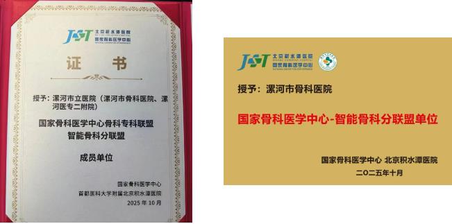 10月18日,國(guó)家骨科醫(yī)學(xué)中心骨科專科聯(lián)盟智能骨科分聯(lián)盟授牌儀式在北京積水潭醫(yī)院舉辦,漯河醫(yī)專二附院(漯河市骨科醫(yī)院、漯河市立醫(yī)院)憑借在骨科領(lǐng)域的卓越實(shí)力和創(chuàng)新探索,成為智能骨科分聯(lián)盟成員單位。