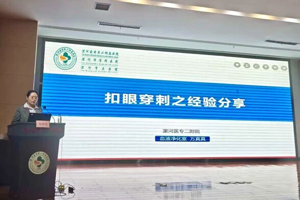 漯河醫(yī)專二附院血液凈化室骨干萬真真以《扣眼穿刺之經(jīng)驗(yàn)分享》為題,結(jié)合實(shí)際案例,細(xì)致講解了扣眼穿刺技術(shù)的操作要點(diǎn)、隧道建立的技巧、日常維護(hù)的注意事項(xiàng)以及常見問題,為降低患者穿刺痛苦提供了寶貴的經(jīng)驗(yàn)。由郾城區(qū)中醫(yī)院血液凈化室護(hù)士長(zhǎng)楚方圓與召陵區(qū)中醫(yī)院血液凈化室護(hù)士長(zhǎng)曹冬曉主持會(huì)議。