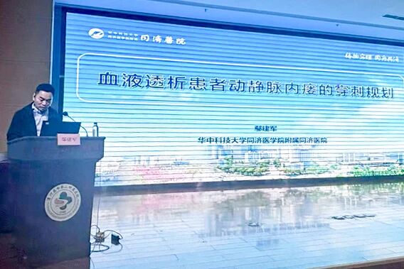 會(huì)議特邀湖北省護(hù)理學(xué)會(huì)血液凈化護(hù)理專業(yè)委員會(huì)主任委員,華中科技大學(xué)同濟(jì)醫(yī)院血液凈化室護(hù)士長(zhǎng)鄢建軍圍繞《血液透析患者動(dòng)靜脈內(nèi)瘺的穿刺規(guī)劃》,系統(tǒng)闡述了如何從血管評(píng)估、穿刺點(diǎn)選擇、到長(zhǎng)期穿刺方案的制定,通過科學(xué)的規(guī)劃最大限度地保護(hù)血管,為延長(zhǎng)患者“生命線”的壽命奠定了堅(jiān)實(shí)基礎(chǔ)。由漯河市中心醫(yī)院血液凈化室護(hù)士長(zhǎng)周瑾與郾城區(qū)人民醫(yī)院血液凈化室護(hù)士長(zhǎng)張娟主持會(huì)議。