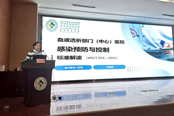 規(guī)范與賦能并重,夯實(shí)安全基石。 在質(zhì)量安全層面,漯河醫(yī)專二附院血液凈化室護(hù)士長(zhǎng)呂春曉對(duì)《血液透析部門(中心)醫(yī)院感染預(yù)防與控制標(biāo)準(zhǔn)》進(jìn)行了權(quán)威解讀,從建筑布局、人員管理、操作流程、監(jiān)測(cè)要求等多個(gè)方面,深入講解了標(biāo)準(zhǔn)的核心要點(diǎn),為各醫(yī)療機(jī)構(gòu)落實(shí)規(guī)范化管理、確保患者安全提供了依據(jù)。由漯河市婦幼保健院血液凈化室護(hù)士長(zhǎng)劉曉靜與臨潁縣人民醫(yī)院血液凈化室護(hù)士長(zhǎng)陳曉夢(mèng)主持會(huì)議。