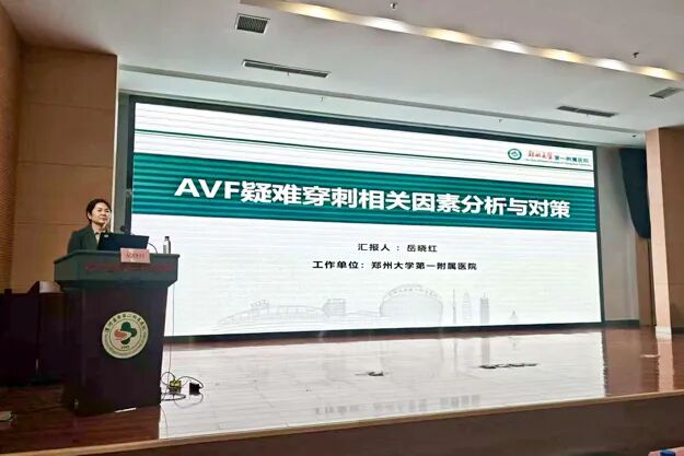 中華護(hù)理學(xué)會(huì)血液凈化專業(yè)委員會(huì)委員、鄭州大學(xué)第一附屬醫(yī)院血液凈化中心護(hù)士長(zhǎng)岳曉紅以《AVF疑難穿刺相關(guān)因素分析與對(duì)策》為題,從精準(zhǔn)評(píng)估、穿刺、超聲輔助、團(tuán)隊(duì)協(xié)作幾個(gè)方面,分析了動(dòng)靜脈內(nèi)瘺穿刺困難的各類因素,分享了一系列實(shí)用、有效的解決方案。由漯河市第二人民醫(yī)院血液凈化室護(hù)士長(zhǎng)朱潔與舞陽縣人民醫(yī)院血液凈化室護(hù)士長(zhǎng)苗保紅主持會(huì)議。