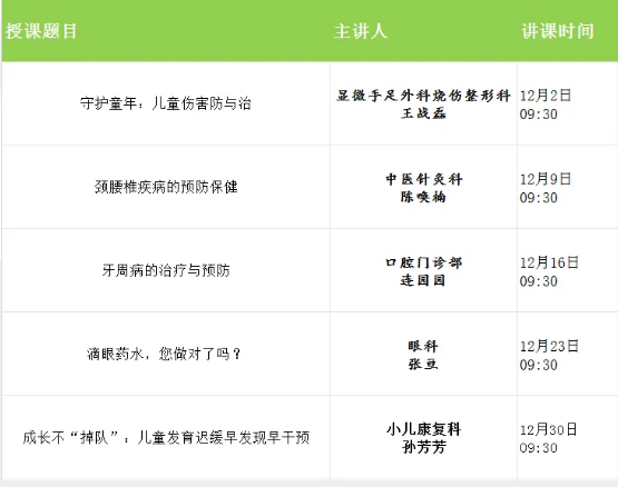 【科普講座】漯河市二院門診健康科普周周講2025年12月講座安排