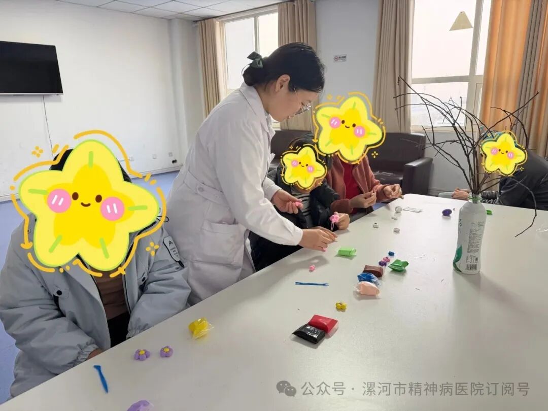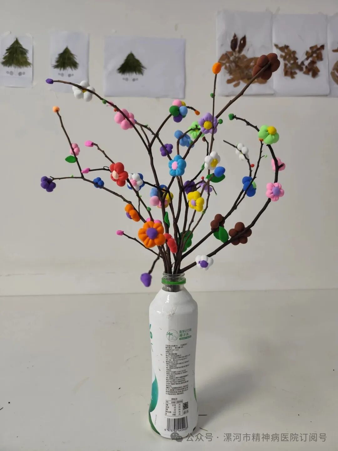 12月1日,漯河市精神病醫(yī)院心身醫(yī)學科的活動室,有點不一樣,沒有復雜的工具,只有幾包彩色粘土、撿來的枯樹枝,還有一群帶著期待的患者。醫(yī)護人員要做的,是把“春天”捏進枯枝里,裝在喝完的飲料瓶里~
