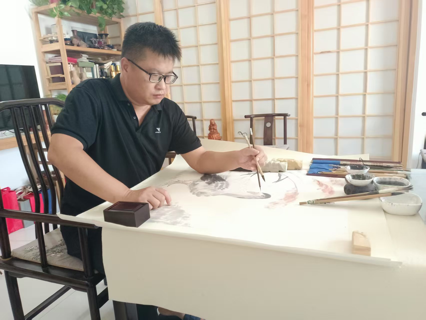 在河上街居住期間,不知是機緣未到,還是陰差陽錯,我多次打電話過去,接電話的都是師母。師母告知,智凱居士已前往上海,參與書畫拍賣事務。閑暇之時,我常去一家名為 “博雅軒” 的畫廊。“博雅軒” 中不僅有智凱居士的墨跡,還有他的篆刻印屏與編著的書籍,這讓我得以進一步走近智凱居士。