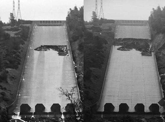 事實證明,使用緊急泄洪道的備用方案并沒有有效地排除危機。12日,緊急泄洪道也出現(xiàn)缺口,情況急轉(zhuǎn)直下。由于擔(dān)心泄洪道坍塌,當(dāng)局緊急疏散下游居民。當(dāng)天晚些時候,加州州長杰瑞·布朗發(fā)布緊急命令,協(xié)助地方政府控制局勢、疏散民眾。