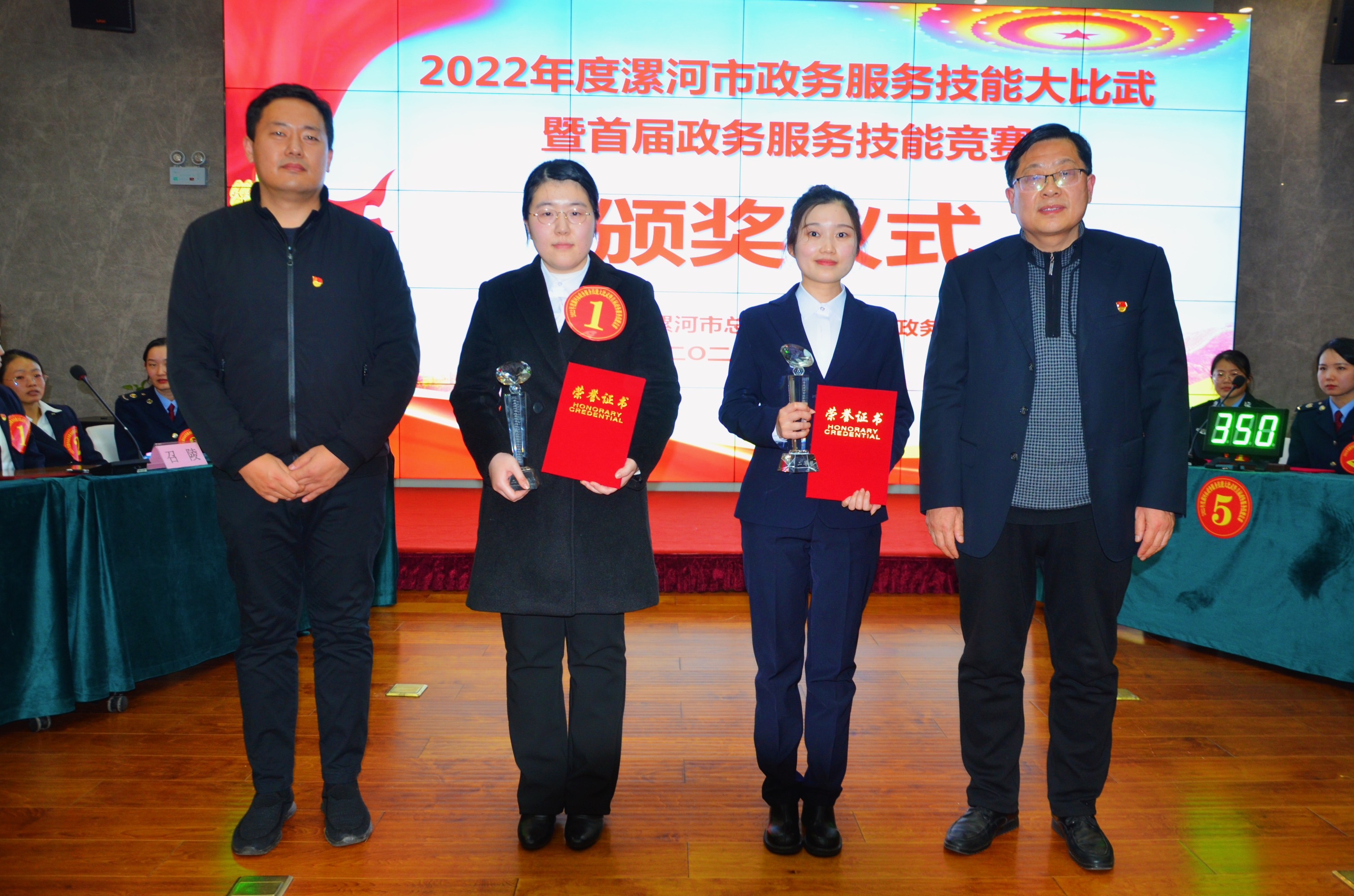 比賽中,各參賽代表隊(duì)奮勇?tīng)?zhēng)先、激烈角逐;各參賽隊(duì)員在賽場(chǎng)上互相配合,充分發(fā)揮出團(tuán)隊(duì)的作用。最終,舞陽(yáng)縣行政服務(wù)中心代表隊(duì)獲得團(tuán)體一等獎(jiǎng),張小麗同志獲得個(gè)人一等獎(jiǎng);召陵區(qū)行政服務(wù)中心、市政務(wù)服務(wù)中心人社公安稅務(wù)聯(lián)合隊(duì)2個(gè)代表隊(duì)獲得團(tuán)體二等獎(jiǎng),孟希瑞、黃丹2名同志獲得個(gè)人二等獎(jiǎng);郾城區(qū)行政服務(wù)中心、臨潁縣行政服務(wù)中心、經(jīng)濟(jì)技術(shù)開(kāi)發(fā)區(qū)行政服務(wù)中心、3個(gè)代表隊(duì)獲得團(tuán)體三等獎(jiǎng),劉玉、劉暢、范亞男3名同志獲得個(gè)人三等獎(jiǎng);舞陽(yáng)縣行政服務(wù)中心、經(jīng)濟(jì)技術(shù)開(kāi)發(fā)區(qū)行政服務(wù)中心、市政務(wù)服務(wù)中心不動(dòng)產(chǎn)登記窗口3個(gè)代表隊(duì)獲得優(yōu)秀組織獎(jiǎng),本次總決賽還設(shè)置了團(tuán)體優(yōu)秀獎(jiǎng)和個(gè)人優(yōu)秀獎(jiǎng)若干。評(píng)委會(huì)成員為獲得獎(jiǎng)項(xiàng)的代表隊(duì)和參賽隊(duì)員頒獎(jiǎng)。