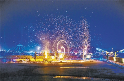 2月11日晚,在紅楓廣場,鐵花如煙花般綻放。記者 楊 光 攝