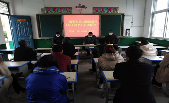 郾城區(qū)龍城一中舉行觀看大型電視紀錄片《為了和平》啟動儀式