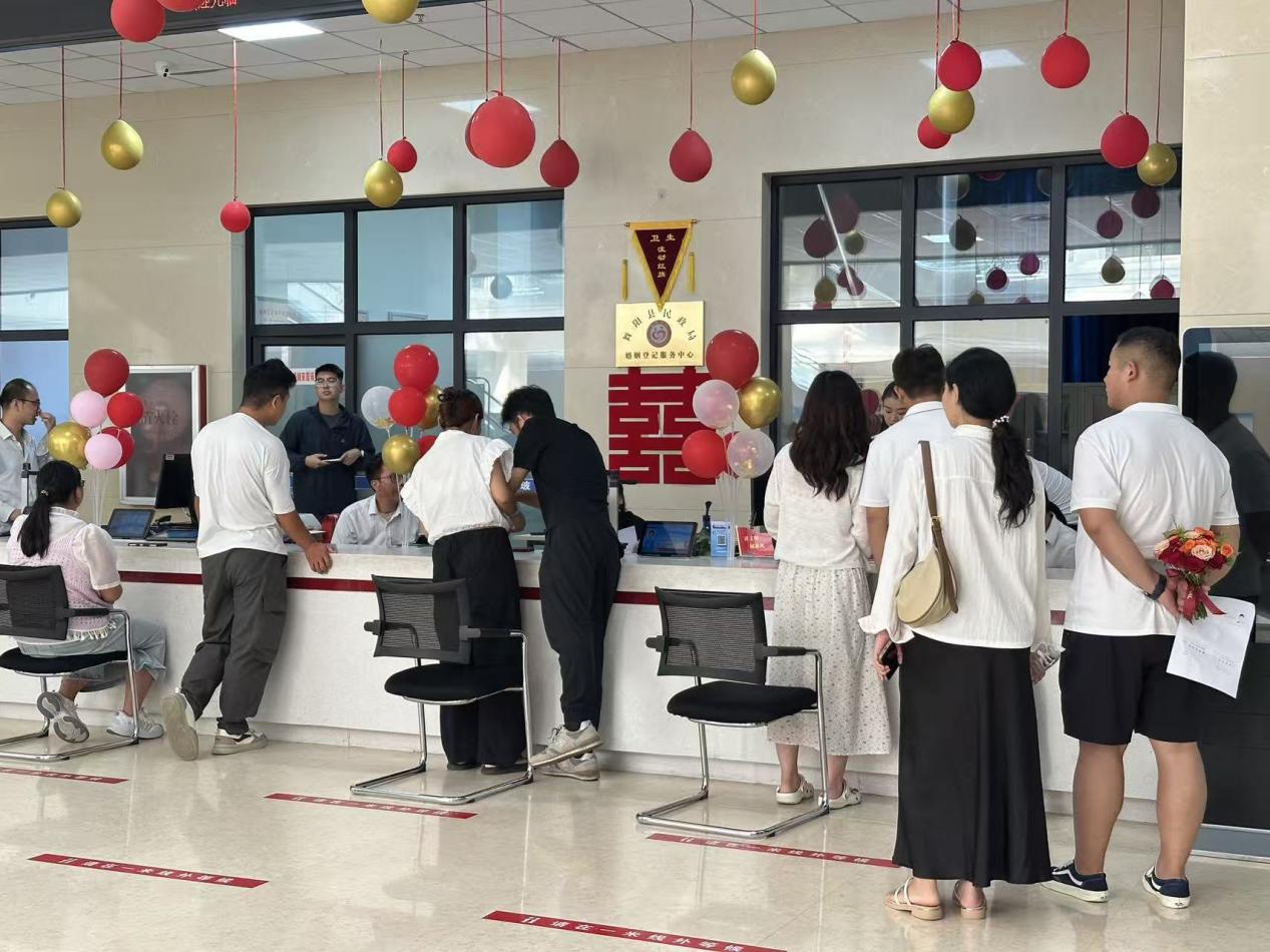 舞陽縣審信局創(chuàng)新“高效辦成一件事”服務,弘揚中華優(yōu)秀傳統(tǒng)文化,傳遞七夕“愛情、家庭、和諧”的美好寓意,推動政務服務與文化傳承的融合,用政務溫度點亮傳統(tǒng)文化,以貼心服務傳遞幸福能量,實現(xiàn)婚姻登記、家庭政策宣傳與新時代婚俗新風倡議有機結(jié)合。