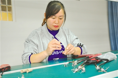“考慮到村里一些不能外出的勞動力無事可做,特別是貧困家庭和低保戶,我們就本著為鄉(xiāng)親們做點事兒的念頭,大著膽子試一試。”電器公司負責人、范軍正的妻子柯會敏說。挑選工人時,電器公司首先考慮家里有富余勞動力的貧困家庭和低保家庭。公司吸納的工人中有6名來自村里的貧困家庭,3名來自低保家庭,2名是殘疾人,范海娜就是其中的一員。