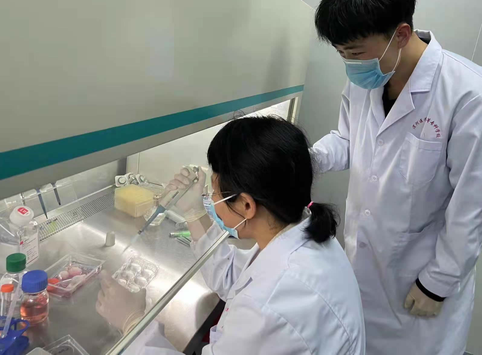 漯河醫(yī)??蒲谐蓡T在進(jìn)行細(xì)胞培養(yǎng)肉研發(fā)(金少舉 供圖)