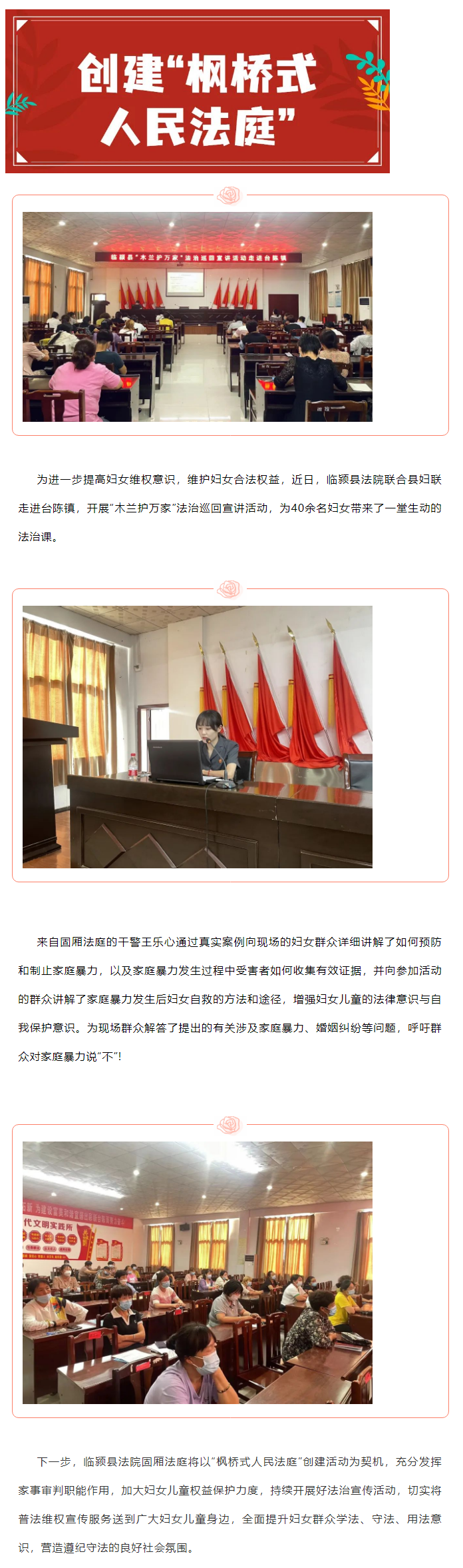 【創(chuàng)建“楓橋式人民法庭”】臨潁縣法院開展“木蘭護(hù)萬(wàn)家”法治巡回宣講活動(dòng)