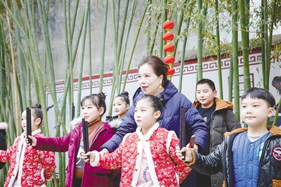 陳梅生教孩子們表演河南墜子。(陳梅生提供)