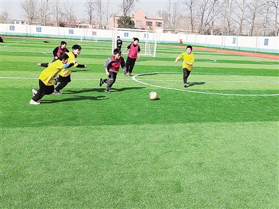 11月16日,隨著下課鈴聲響起,記者看到,郾城區(qū)李集鎮(zhèn)牛王廟小學(xué)的孩子們沖向足球場,一場有趣的足球比賽開始了。