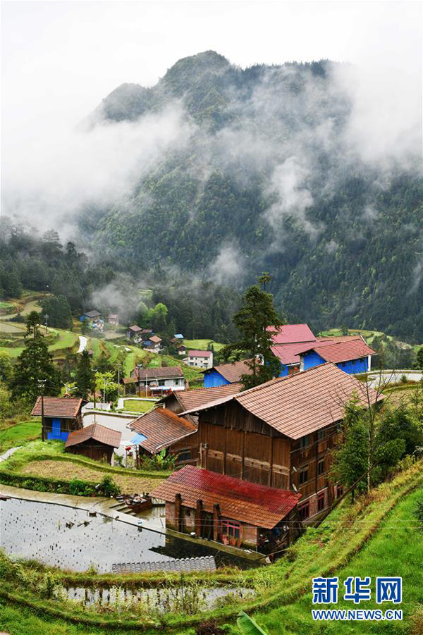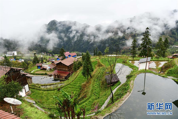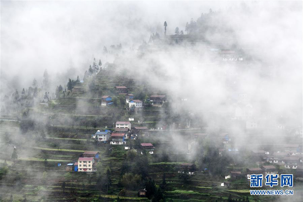 當(dāng)日,在貴州省黔東南苗族侗族自治州,一場春雨過后,村莊、山川、田野在薄霧中若隱若現(xiàn),美若畫卷。