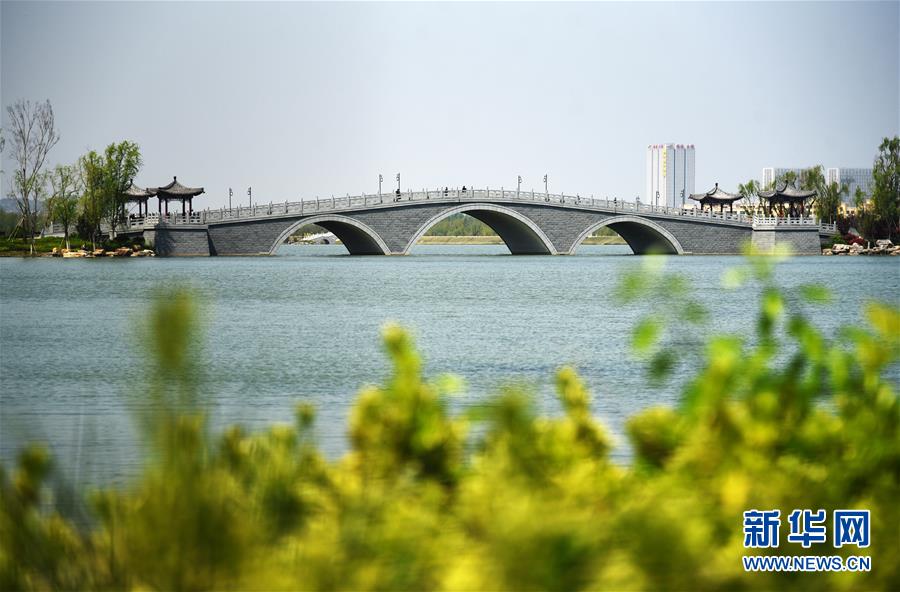 4月13日拍攝的濟(jì)南華山歷史文化濕地公園一景。 春季的濟(jì)南華山歷史文化濕地公園綠意盎然。 新華社記者 王凱 攝