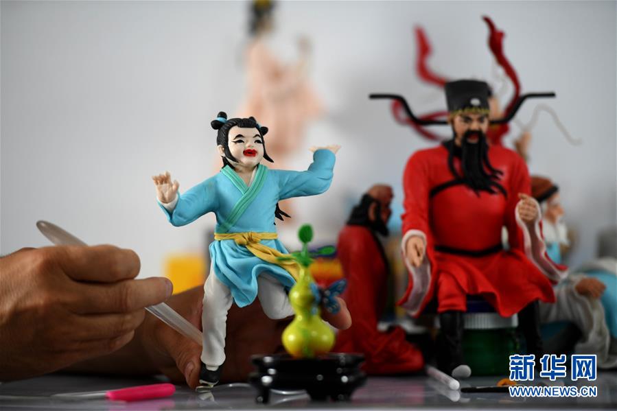 6月11日,在河北省石家莊市深澤縣職業(yè)技術教育中心,民間藝人王亮展示自己創(chuàng)作的面塑作品。 深澤面塑是當?shù)赜忻拿耖g手工技藝,傳承歷史悠久。石家莊市深澤縣民間藝人王亮自幼酷愛手工,他專注面塑創(chuàng)作20多年,推出歷史神話人物、十二生肖、田園風光等作品。近年來,王亮致力于傳承面塑民間技藝,將其帶到20多個國家和地區(qū)進行文化交流,讓更多人接觸、了解到中國傳統(tǒng)民間藝術。 新華社發(fā)(許建園 攝)