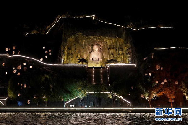 2020年4月起,河南省洛陽市龍門石窟景區(qū)推出“夜游龍門”活動,讓游客在晚間領(lǐng)略石窟造像的別樣風(fēng)采。 新華社記者 李安 攝