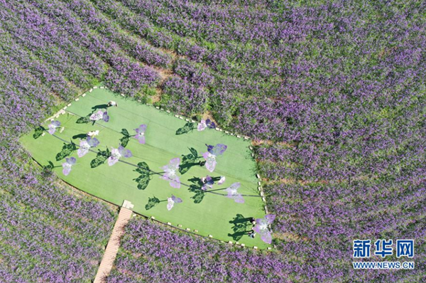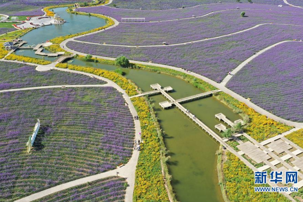 這是7月12日拍攝的甘肅省金昌市紫金苑景區(qū)(無人機照片)。 甘肅省金昌市是我國最大的鎳鈷生產(chǎn)基地,有“鎳都”之稱。近年來,金昌市大力推進花園城市建設(shè),利用當?shù)貢円箿夭畲?、光照充足等自然條件,引種花卉,讓這座地處戈壁的工業(yè)城成為掩映在花海中的田園花城。 新華社發(fā)(杜哲宇 攝)