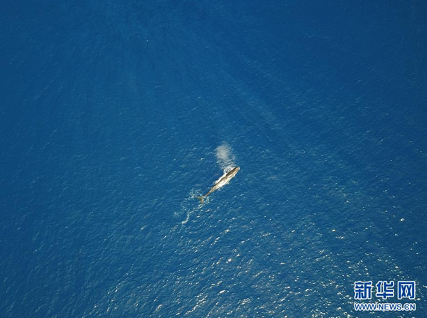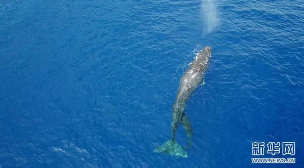 這是7月24日在南海某海域拍攝的抹香鯨(無人機(jī)照片)。 新華社記者 張麗蕓 攝