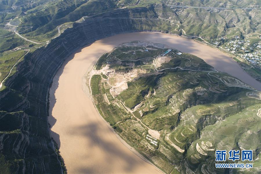陜西延川縣黃河盤龍灣景色(9月10日攝,無(wú)人機(jī)照片)。