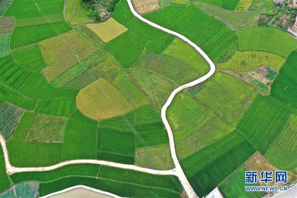 廣西平樂縣張家鎮(zhèn)在穩(wěn)定水稻播種面積的同時,積極推廣優(yōu)質(zhì)高產(chǎn)水稻新品種。時下,正值該鎮(zhèn)晚稻抽穗揚(yáng)花時節(jié),田園一派美麗景象。 新華社記者 周華 攝