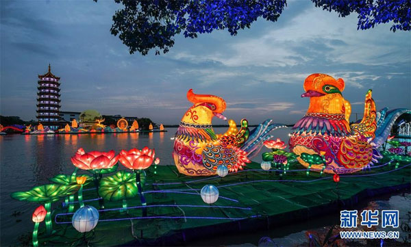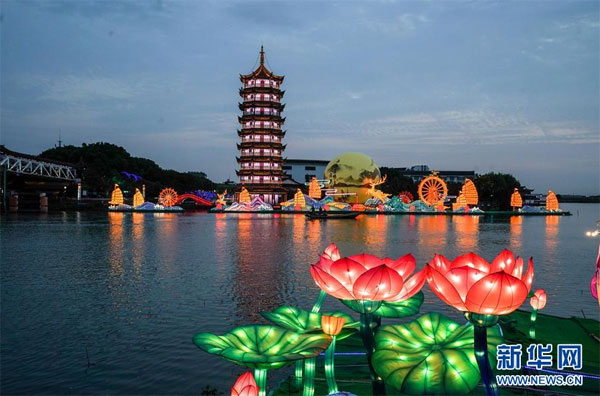 9月28日,演員在開(kāi)燈儀式上表演歌舞節(jié)目。 當(dāng)日,2020海峽兩岸(昆山)中秋燈會(huì)在江蘇昆山開(kāi)幕,為期一個(gè)月。燈會(huì)設(shè)置的水鄉(xiāng)周莊燈區(qū)以水鄉(xiāng)、古鎮(zhèn)、田園江南為依托,將傳統(tǒng)彩燈與現(xiàn)代光影藝術(shù)相融合,打造“水韻芳華”夜周莊。 新華社記者 楊磊 攝
