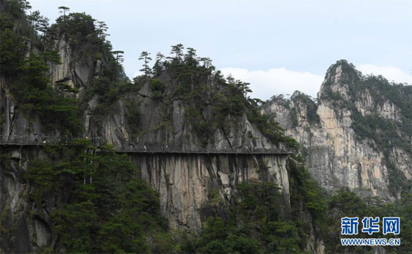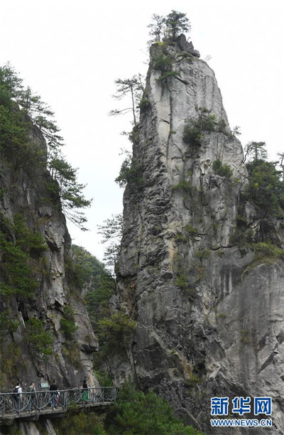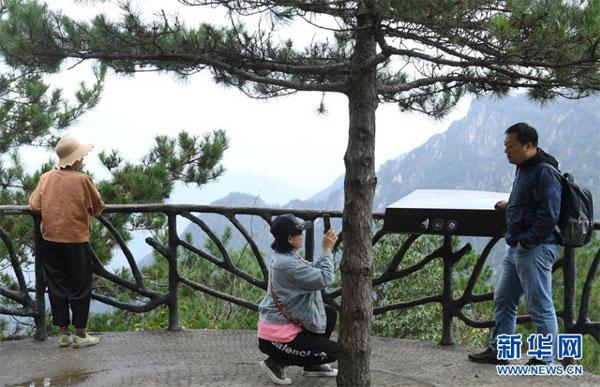 10月6日,游客在臨安區(qū)清涼峰游玩。 中秋和國(guó)慶假期,不少游客來(lái)到浙江杭州臨安區(qū)的山間游玩,和大自然親密接觸。 新華社記者 翁忻旸 攝