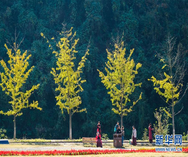 11月12日,游客在“十里古銀杏長廊”觀賞美景。新華社記者 徐昱 攝