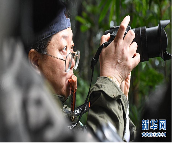 11月12日,由于海南長(zhǎng)臂猿突然出現(xiàn),調(diào)查人員叼起正在吃的火腿腸,立即開(kāi)始拍攝遠(yuǎn)處的海南長(zhǎng)臂猿。