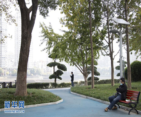 10月27日,市民在武漢市新華路與建設(shè)大道相交處的“口袋公園”內(nèi)歇息。新華社記者 熊琦 攝