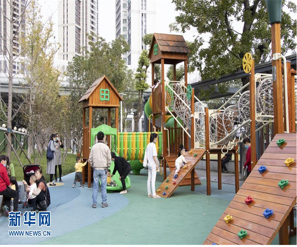 10月27日,家長帶著孩子在武漢市姑嫂樹“口袋公園”內(nèi)玩耍。新華社發(fā)