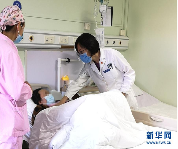 11月20日,北京地壇醫(yī)院婦產(chǎn)科主任李麗為感染HIV的孕婦檢查。 新華社發(fā)