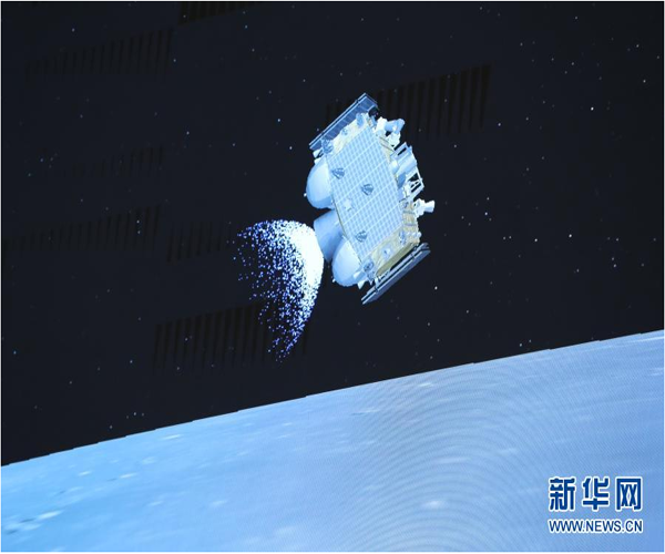 這是12月3日,在北京航天飛行控制中心拍攝的嫦娥五號上升器飛行過程。新華社記者 金立旺 攝