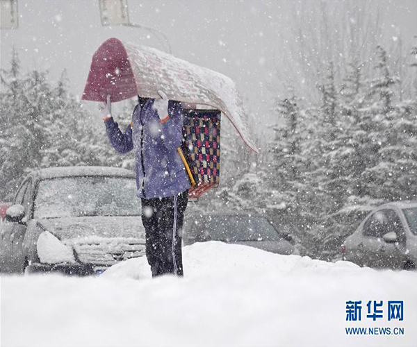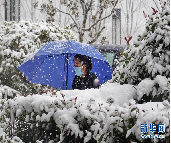 1月5日,在山東煙臺(tái)街頭,行人冒雪出行。 當(dāng)日是小寒節(jié)氣,受強(qiáng)冷空氣影響,山東煙臺(tái)迎來降雪。