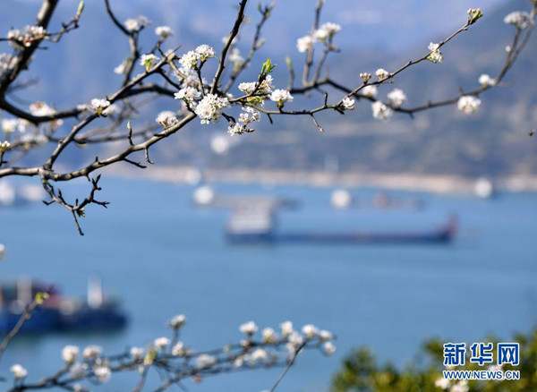 隨著氣溫回升,三峽庫(kù)區(qū)湖北省秭歸縣沿江兩岸春花爛漫,景色如畫(huà)。