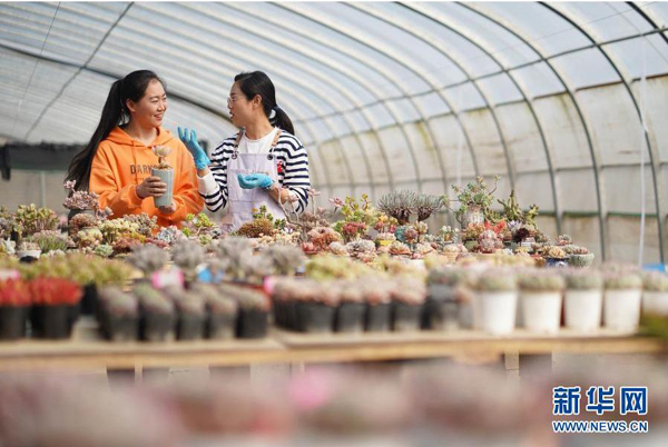 3月9日,在內(nèi)丘縣一家多肉培育基地,員工(右)向游客介紹多肉。近年來(lái),河北省邢臺(tái)市內(nèi)丘縣加快推進(jìn)休閑農(nóng)業(yè)和鄉(xiāng)村旅游發(fā)展,打造“農(nóng)業(yè)+旅游”農(nóng)旅融合新業(yè)態(tài),逐步形成“農(nóng)旅結(jié)合、以農(nóng)促旅、以旅興農(nóng)”的產(chǎn)業(yè)格局,帶動(dòng)群眾增收致富,助推鄉(xiāng)村振興。新華社發(fā)(劉繼東 攝)