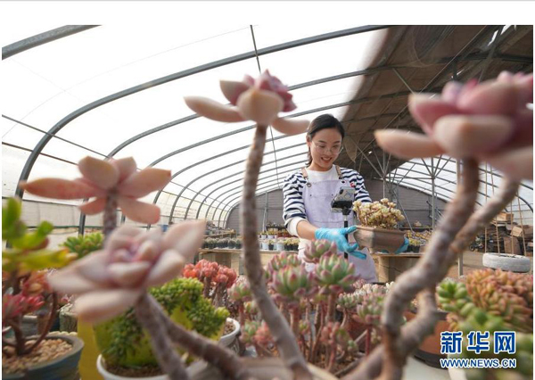 3月9日,在內(nèi)丘縣一家多肉培育基地,員工利用網(wǎng)絡(luò)直播推介多肉。近年來(lái),河北省邢臺(tái)市內(nèi)丘縣加快推進(jìn)休閑農(nóng)業(yè)和鄉(xiāng)村旅游發(fā)展,打造“農(nóng)業(yè)+旅游”農(nóng)旅融合新業(yè)態(tài),逐步形成“農(nóng)旅結(jié)合、以農(nóng)促旅、以旅興農(nóng)”的產(chǎn)業(yè)格局,帶動(dòng)群眾增收致富,助推鄉(xiāng)村振興。新華社發(fā)(劉繼東 攝)