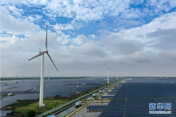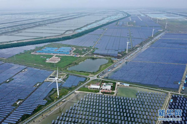在江蘇省東臺市沿海灘涂綜合開發(fā)示范區(qū),集風(fēng)力發(fā)電、光伏發(fā)電、水面養(yǎng)殖為一體的“風(fēng)光漁”立體開發(fā)模式正在形成,實(shí)現(xiàn)灘涂資源的高效利用與生態(tài)開發(fā)。