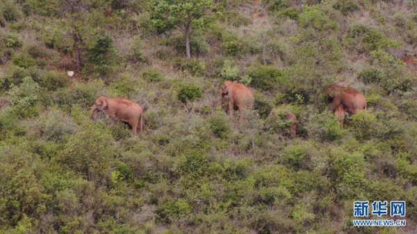 6月22日在云南省玉溪市峨山縣大龍?zhí)多l(xiāng)附近拍攝的象群(無人機(jī)視頻截圖)。