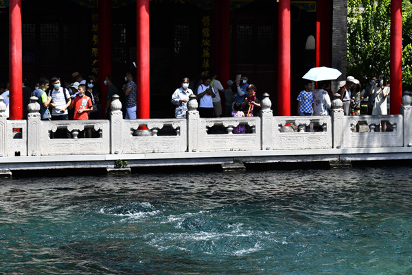 8月2日,被譽(yù)為“天下第一泉”的濟(jì)南趵突泉實(shí)時(shí)水位28.94米,“趵突騰空”勝景吸引眾多游客前來欣賞。近期濟(jì)南市降水充沛,趵突泉時(shí)隔約兩年再現(xiàn)“趵突騰空”勝景。