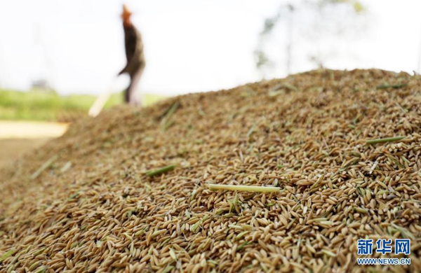 湖南資興:中稻成熟農(nóng)民忙收獲